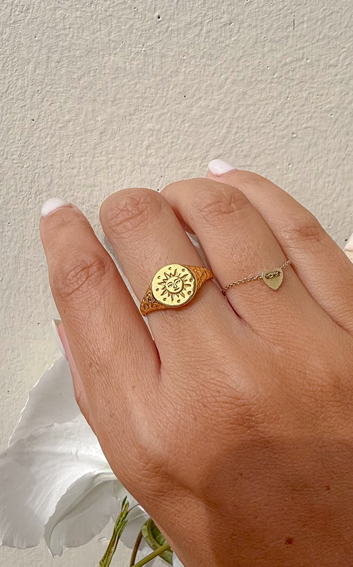 Gefertigt aus 925er Sterling Silber und veredelt mit einer edlen 24 Karat Gold-Beschichtung, bringt der Sonnenring warme Eleganz und zeitlose Ausstrahlung an deine Hand.